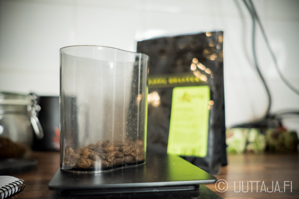 Valmistustapavalinta tälle kahville oli helppo. Aeropressillä on tullut upeita kupillisia hyvinkin erityyppisistä kahveista ja näin mielenkiintoisen tapauksen äärellä Aeropress oli oikeastaan melko itsestäänselvyys. Valmistaminen tapahtui suhteella 17 grammaa hieman suodatinkarkeutta hienompaa kahvia ja noin 230 grammaa 90-asteista vettä.