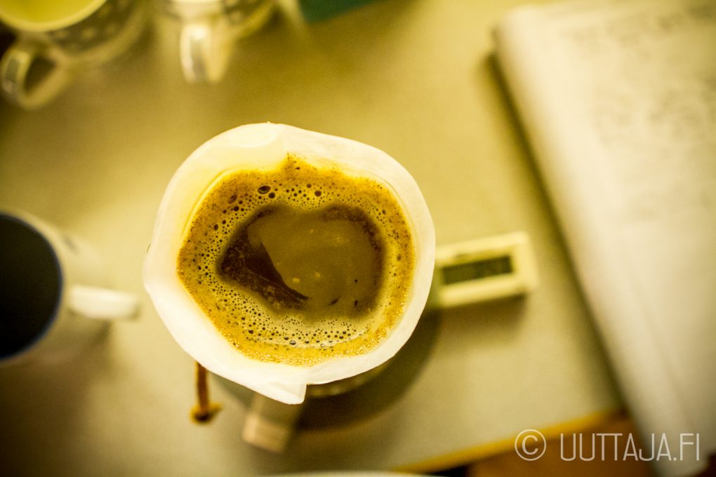 Kahvia valmistin neljä desiä suhteella: 24 grammaa kahvia ja neljä desiä 92-asteista vettä. Käytän yhä lähtökohtana kahvin valmistuksessa 6 grammaa kahvia per vesidesi. Uusintamaisteluiden myötä tulee säädettyä kahvin määrää hieman suuntaan tai toiseen.