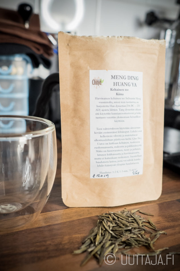 Meng Ding Huang Ya on melkoista hemmottelua varsinkin sellaiselle, jonka teetottumukset pyörivät markettien pussiteeosaston tuotteiden ympärillä. Kevyt, raikas, makea ja kukkainen kokonaisuus on ruuan päälle myrkynvarma yhdistelmä ja kyllä tällaista nauttii mielellään vaikka useampaankin otteeseen päivän aikana. Potkua tästä ei saa, mutta lämpöä, keveyttä ja raikkaita makuja vaikkapa kirpeään pakkaspäivään sitäkin enemmän. Tee on todella tarkka haudutuksen suhteen, sillä liian kuuma vesi, liian suuri lehtien määrä tai pitkä haudutusaika tärvelee haudutuksen ja tekee siitä kitkerän. Toisaalta tällaisen historian omaavaa teetä käsittelee kuin haurasta lasiesinettä, eli äärimmäisellä tarkkuudella ja varovaisuudella.