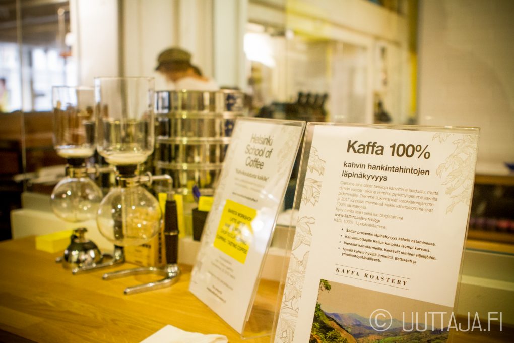 Visiitti Kaffalle oli mahtava. Sain jälleen yhden uuden paahtimokokemuksen, pääsin maistelemaan tuloillaan olevaa erikoistuotetta ja sain asioida hienossa kahvilassa. Täytyy jatkossa hoitaa Helsingin pään asioinnit aina niin, että kulkureittini menee Punavuoren kautta ja aikatauluni niin, että on aikaa ottaa yksi Aeropress-valmisteinen kahvi Kaffan tiskillä.