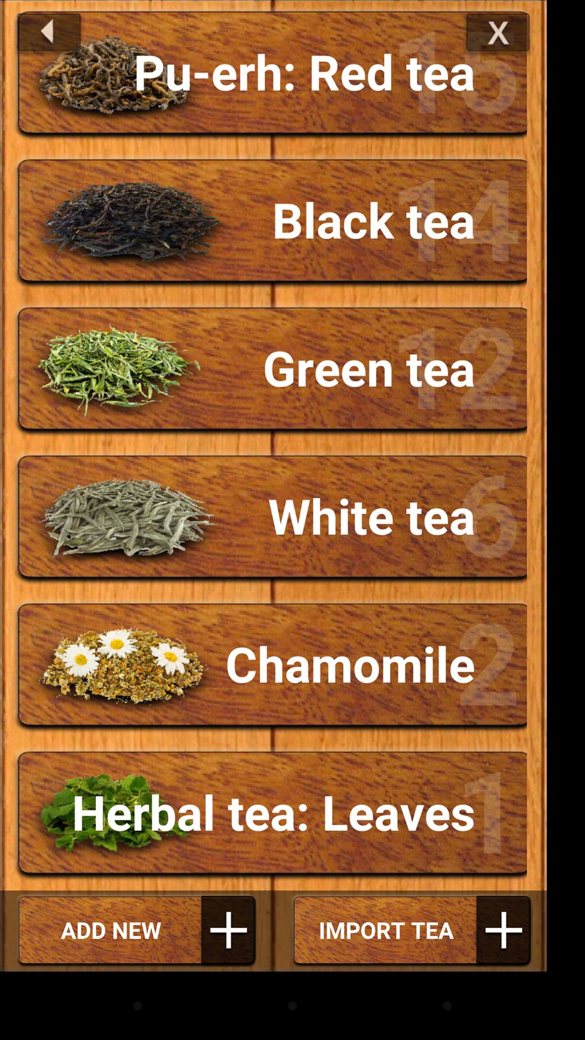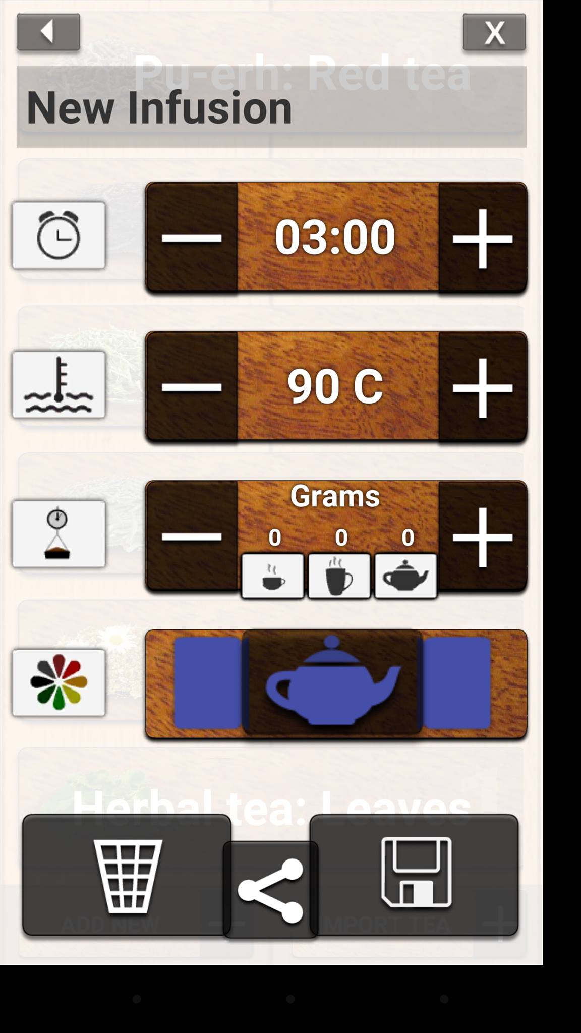 Perfect Brew: Tea Timer includes a huge variety of drinks and beverages on default. Plus it’s possible to add for example your own herbal drinks. Defaults include inter alia black, green and white tea, herbal tea from flowers, leaves and roots, chamomille and peppermint.