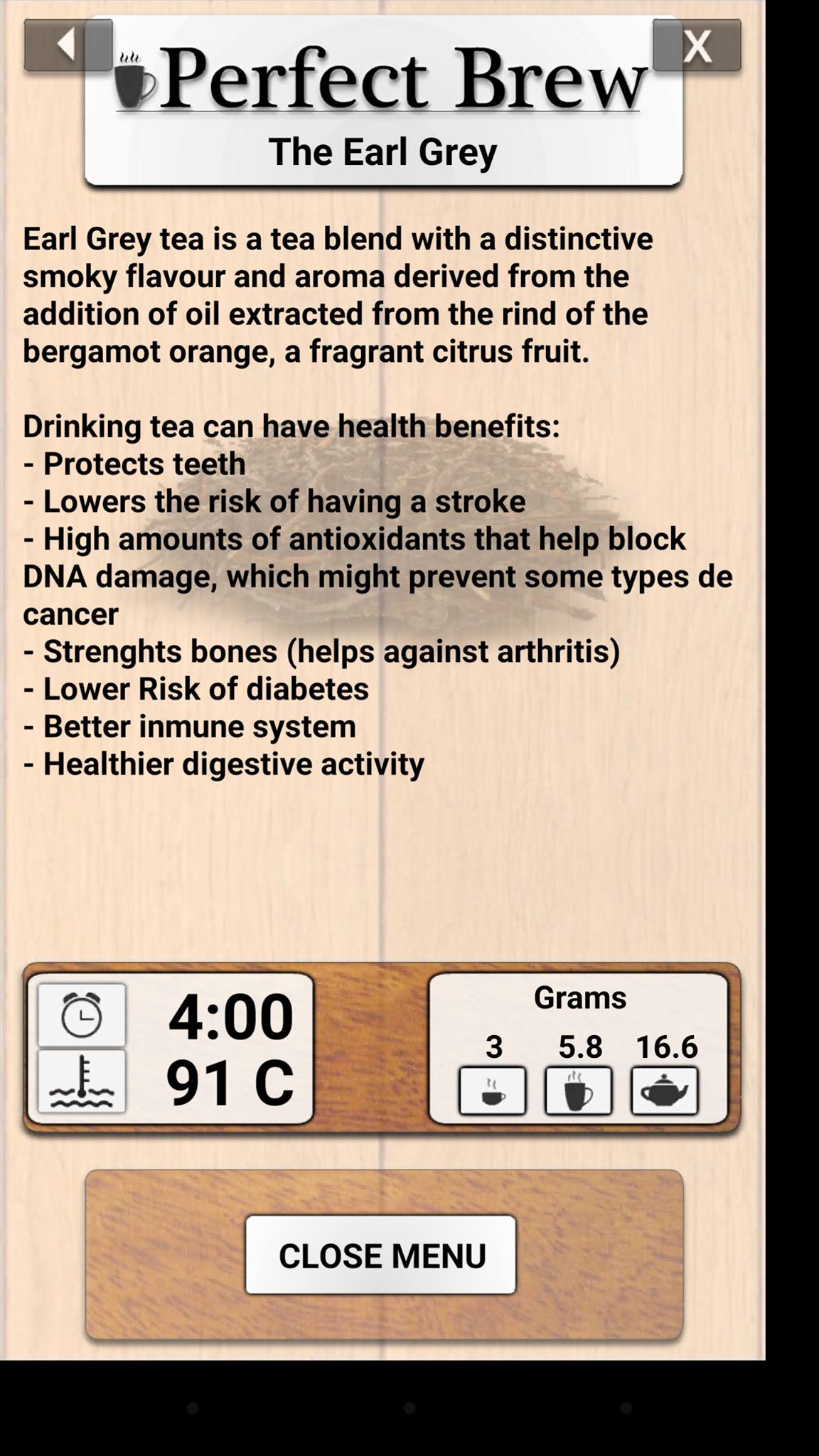 Too many people have poured their bitter or too weak teas down the sink. This app might give you a little help. With Perfect Brew: Tea Timer it’s easy to get much info about the teas and also get tastes that you might have not been able to get out of them before.