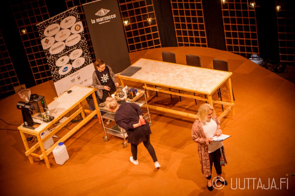 Tänä vuonna oli selkeästi nosteltu esiin pour over -valmistustapoja. Moni näytteillepanija antoi opastusta ja piti workshopeja esimerkiksi V60-valmistamisesta. Oppitunteja sai halutessaan myös jauhatuskarkeuksista, kahvin alkuperästä ja sen jäljitettävyydestä sekä kahvinkeitinten oikeaoppisesta puhdistamisesta.
