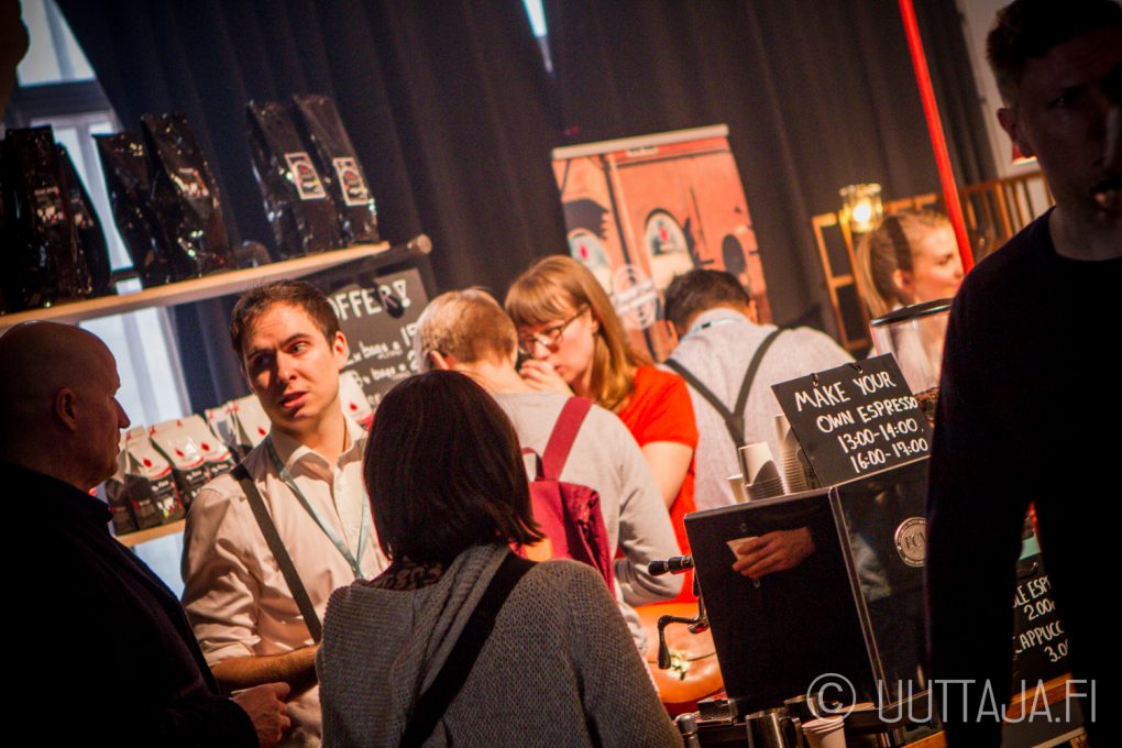 Juteltua tuli varmasti valtaosalla kojuista. Tarinoita vaihdettiin niin Good Life Coffeen, Cafetoria Roasteryn, Kaffa Roasteryn sekä Caffin väen kanssa. Kaffasta sen verran, että he promosivat festivaaleilla uutta kahvitilauspalvelua Kaffa Kotiin, johon liittymällä saa Kaffan kahvia haluamaansa tahtiin postin tuomana kotiin. Festivaaleilla tilauksen tehneet saivat elinikäisen alennuksen tilaukseensa. Kaffan kahvila palkittiin myös festareiden yhteydessä ”Suomen Paras Kahvila” -tittelillä. Onnea kovasti!