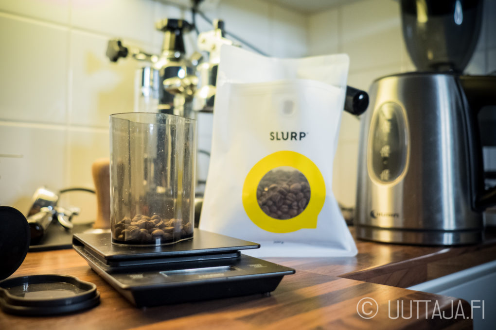Aijai, kyllä voi ihminen tulla iloiseksi kotona odottelevasta postista. Nimenomaan silloin kun siellä laskujen ja mainosten seassa odottelee viimeisin Slurp-kahvi. Tämänkertainen kuori piti sisällään terveiset Punavuoresta, Helsingistä. Asialla tietenkin Kaffa Roastery.