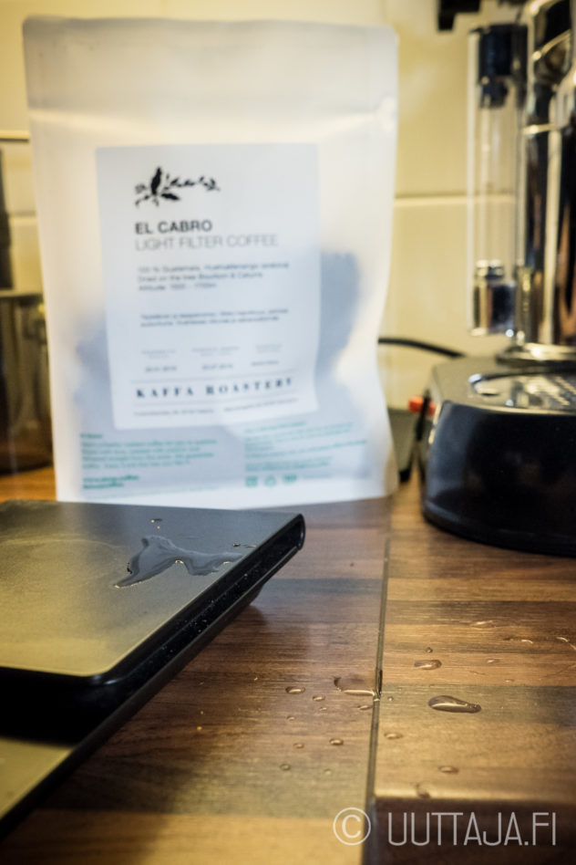 Kuoressa odotti pussillinen guatemalalaista Huehuetenangon alueen El Cabro -kahvia. Kahvin prosessoinnissa on yksi äärimmäisen mielenkiintoinen piirre: marjojen annetaan nimittäin kuivua puuhun, jonka jälkeen ne kerätään ja papujen ympäriltä poistetaan hedelmäliha. Kahvi kasvaa 1500-1700 metrin korkeudella Finca La Bosla -tilalla La Libertadin alueella. Lajikkeiltaan El Cabro on Bourbonia ja Caturraa. Kahvi on Kaffalle hankittu noudattaen heidän Kaffa Handshake -periaatettaan ja Kaffan paahtaja on itse ollut tilalla valitsemassa kahvin heidän valikoimaansa.