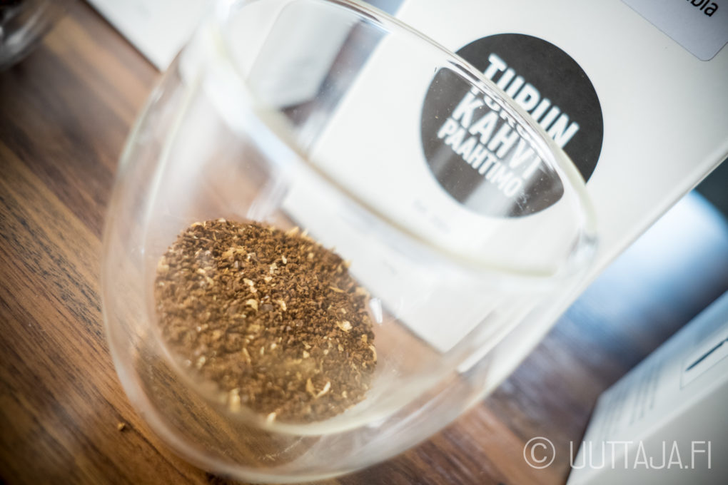 Annostelin jokaista kahvia 12 grammaa omiin laseihinsa. Annostellessa kävin läpi tuoksut papuvaiheessa sekä jauhamisen jälkeen. Alla lyhyt havaintolista tuoksuista: